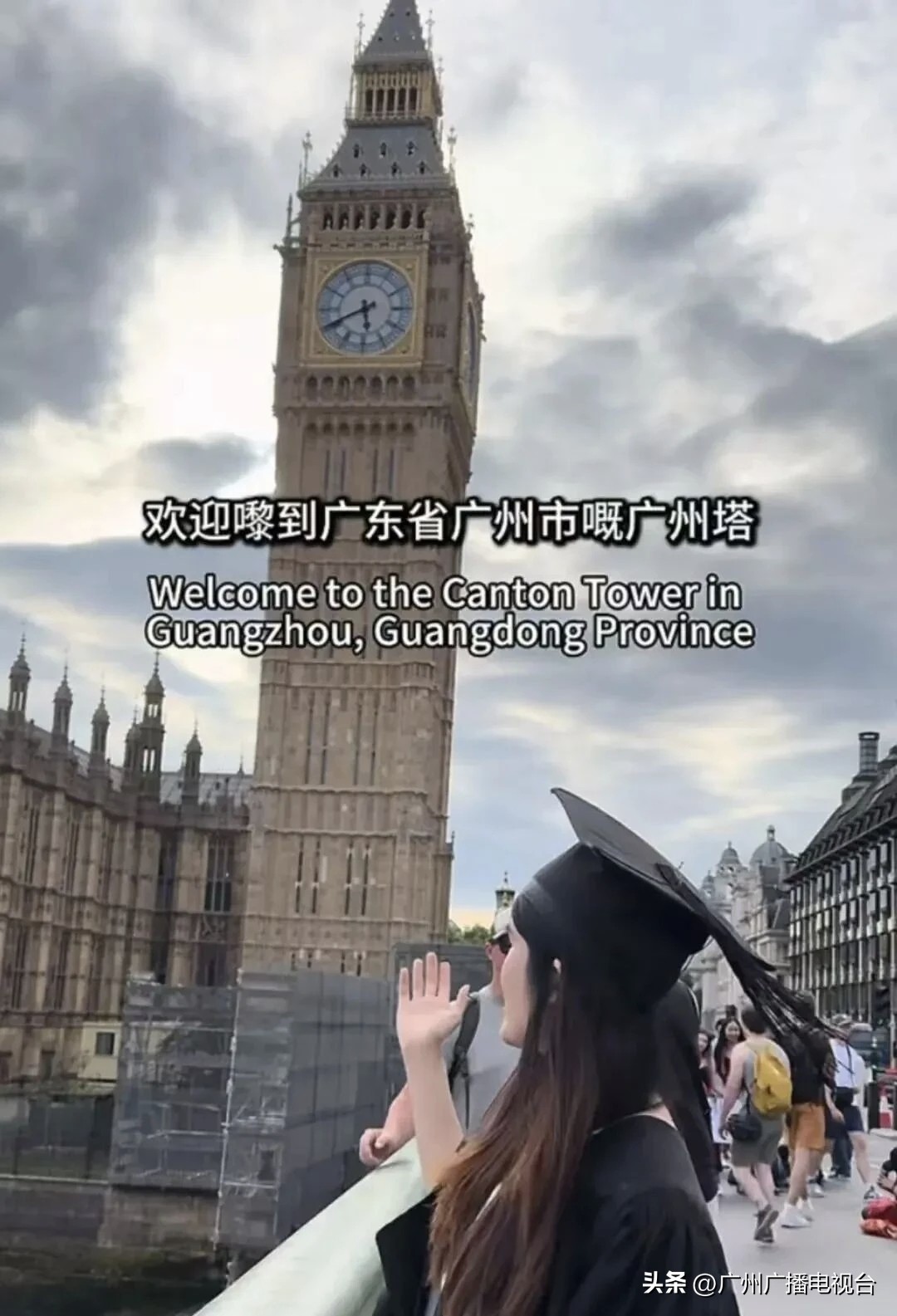 这十个字仿佛成了流量开关。在小红书、B站上,网友们玩得不亦乐乎:一边喊着这句口号,一边将世界各地的地标“广州化”,最后神总结为“世界是个巨大的大湾区”。