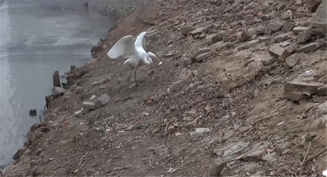 白鹭的腿受了伤,走起路来都是一瘸一拐。而且由于它的一条腿不能着地,要想捕鱼吃,还真有点困难。它只好来到涧河边上,看看能不能在滩涂找一些死鱼吃。