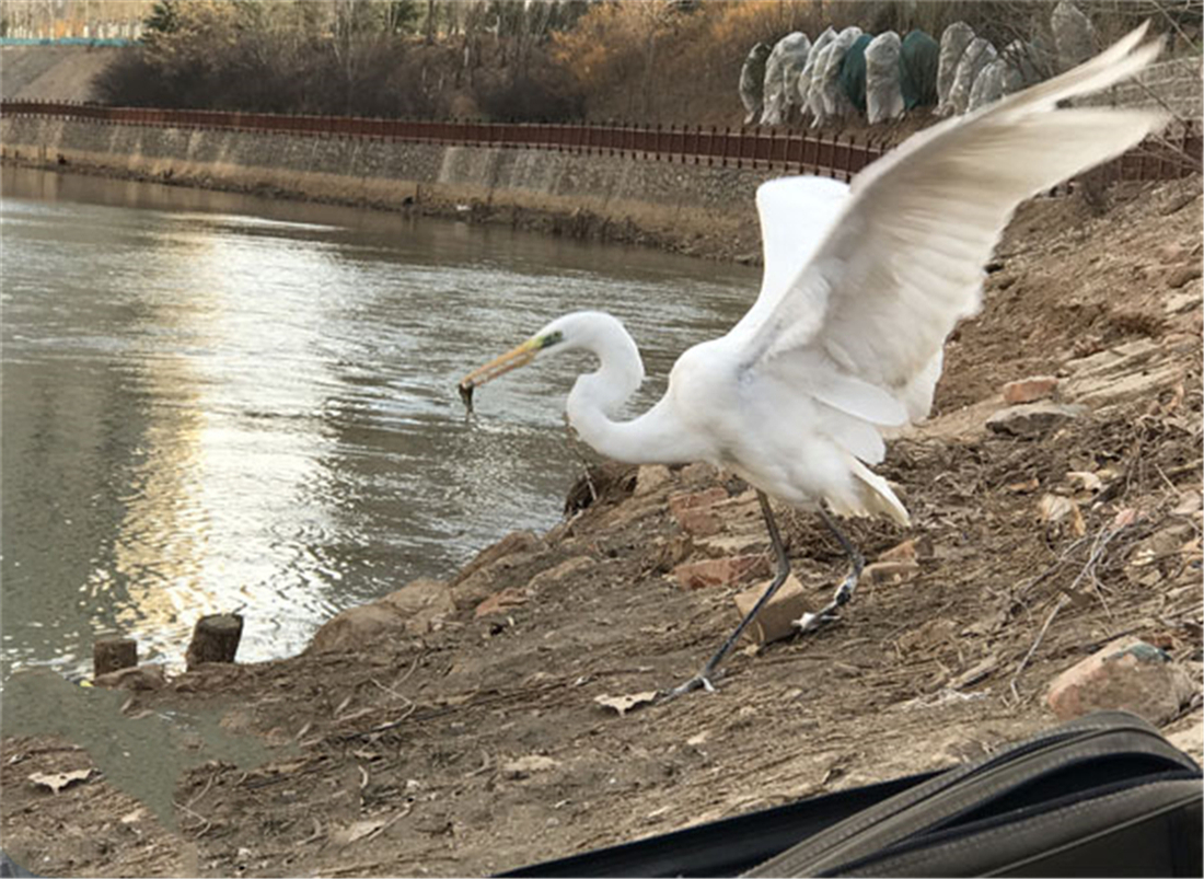 一来二去,白鹭越来越信任这位男子,经过半个月的相处,它们熟络了。而且白鹭已经把这位大哥当作朋友了,只要这位大哥一到河边落脚,白鹭便走过来蹲守在旁边,腆着小脸蛋,等着开饭,活脱脱就是一只可爱的小“吃货”嘛!