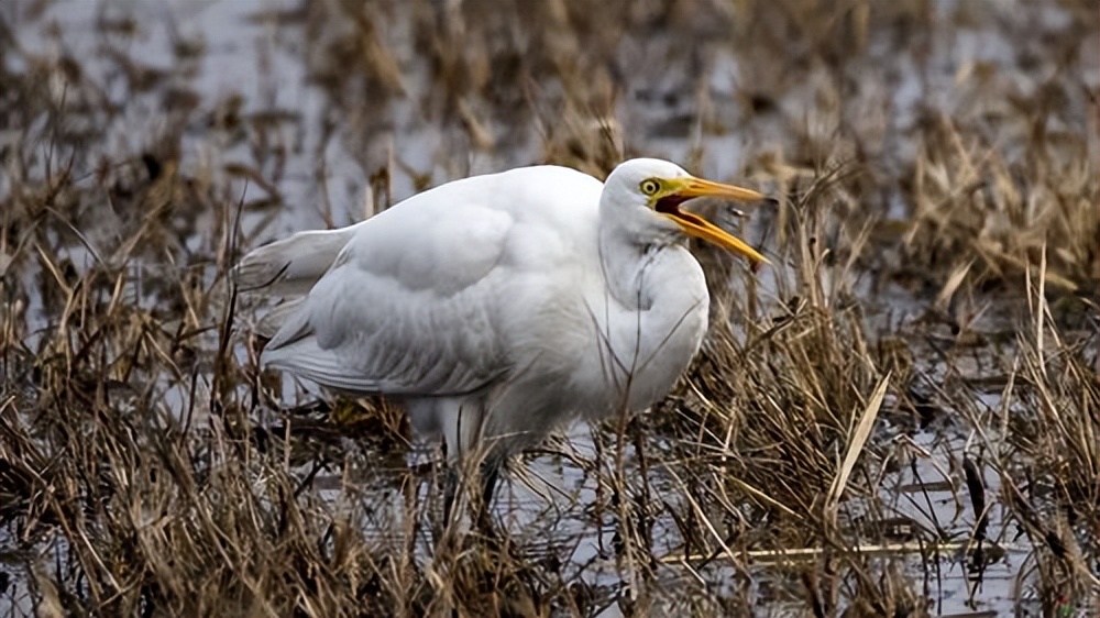 黄嘴白鹭以鱼类、蛙类、虫类等为食,这决定了它的栖息地主要集中在水域周围。在浅水湿地中,黄嘴白鹭通常会悄无声息地靠近猎物,然后迅速地伸出其锥形的黄色嘴巴,将猎物一口吞下。其捕食行为迅猛而精准,体现了其在捕食方面的高度适应性。