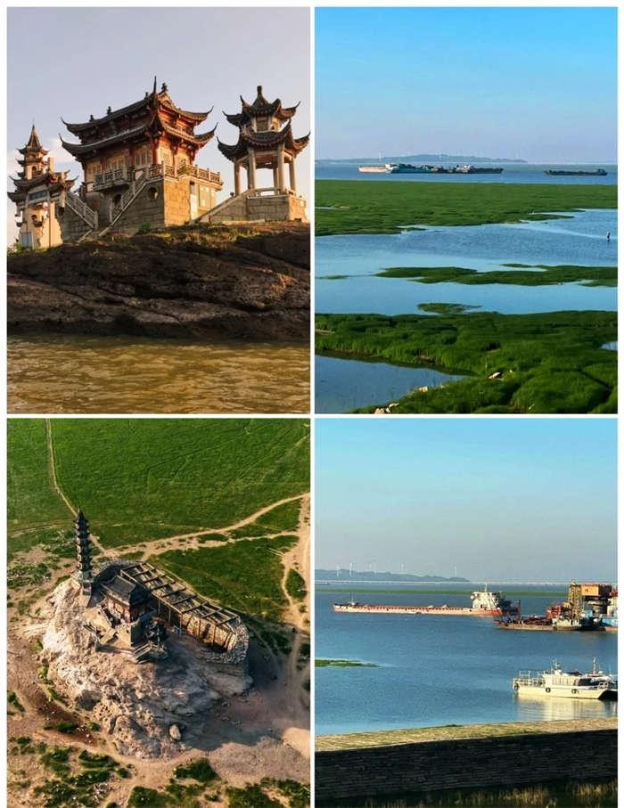 站在鄱阳湖和长江交汇处的观景台,能看到左边是碧绿的湖水,右边是浑浊的江水,两股水流在夕阳下形成明显的分界线。