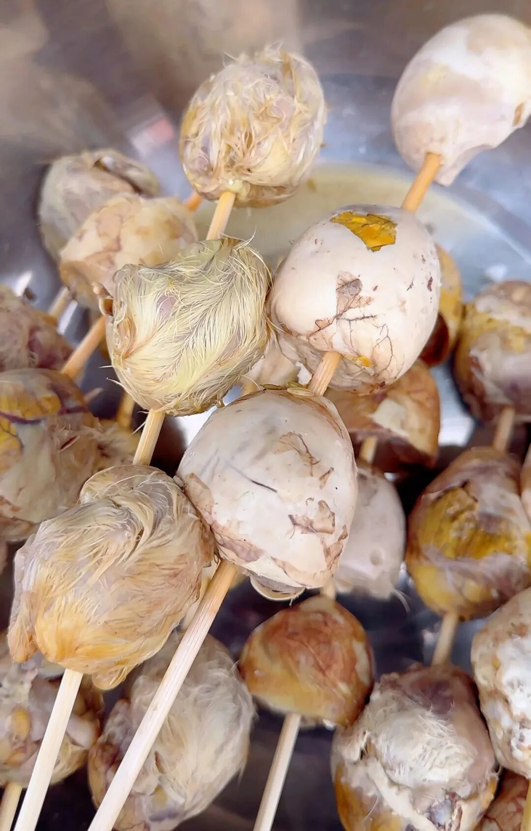 毛鸡蛋是指未孵化出小鸡的鸡蛋,其中胚胎已基本成型,体表长有细小绒毛,故而得名。这道菜在河南十分流行。一般人看到这美食,一定会被吓得不轻,不敢下嘴。 然而,一旦品尝这道美食,其美味定会给人留下深刻印象。一般做法是像茶叶蛋似的添加调料水煮,边煮边敲击蛋壳,将汤汁渗进蛋内,吃时连同蛋壳内汤料和蛋肉一块吮吸进口中,边嚼边品。当地民谚云:"宁舍三月肉,不舍毛蛋汤"。还有种煎烤做法,小鸡在炭火的高温下变得滋滋冒油。然后塞上子孜然椒盐以及辣椒粉等调味料即可。成菜吃起来软软嫩嫩,滋味十足。 这道菜富含极高的营养价值,经常食用对身体健康大有裨益。因此,建议克服心理障碍尝试品尝。