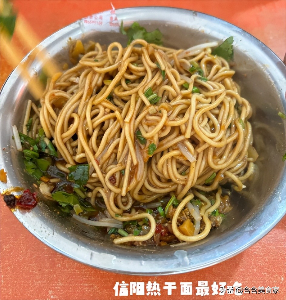 只有信阳人才懂这一碗热干面!新鲜现煮加上灵魂酱料和豆芽儿,面的软糯结合豆芽儿的爽脆,是信阳版本热干面的特色,不过小编我推荐红油热干面,细细的热干面,不糊嘴的芝麻酱,香香的红油蒜泥,香迷糊了呀!