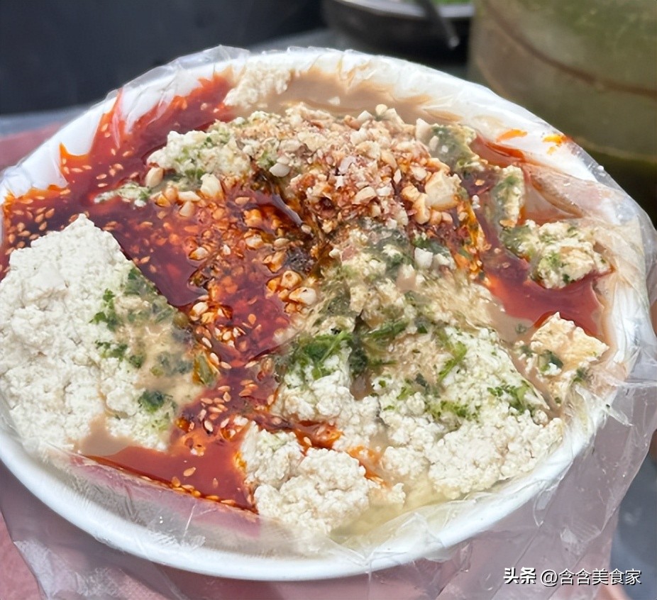 超级传统的许昌热豆腐!据说是许昌本地的特产,非常的好喝,它不是那种嫩豆腐,它是有一点硬的豆腐,成品其貌不扬,但回味无穷。那既不是吃主食的饱腹感,也不是吃甜品的幸福感,那可能是一种尝遍山珍海味后的质朴味道,平淡的豆腐本可以入口而尽,但因为稀释后的两种神奇酱料,让人慢慢体会芳香物质与豆腐的混合,可见县乡美食的智慧传承。