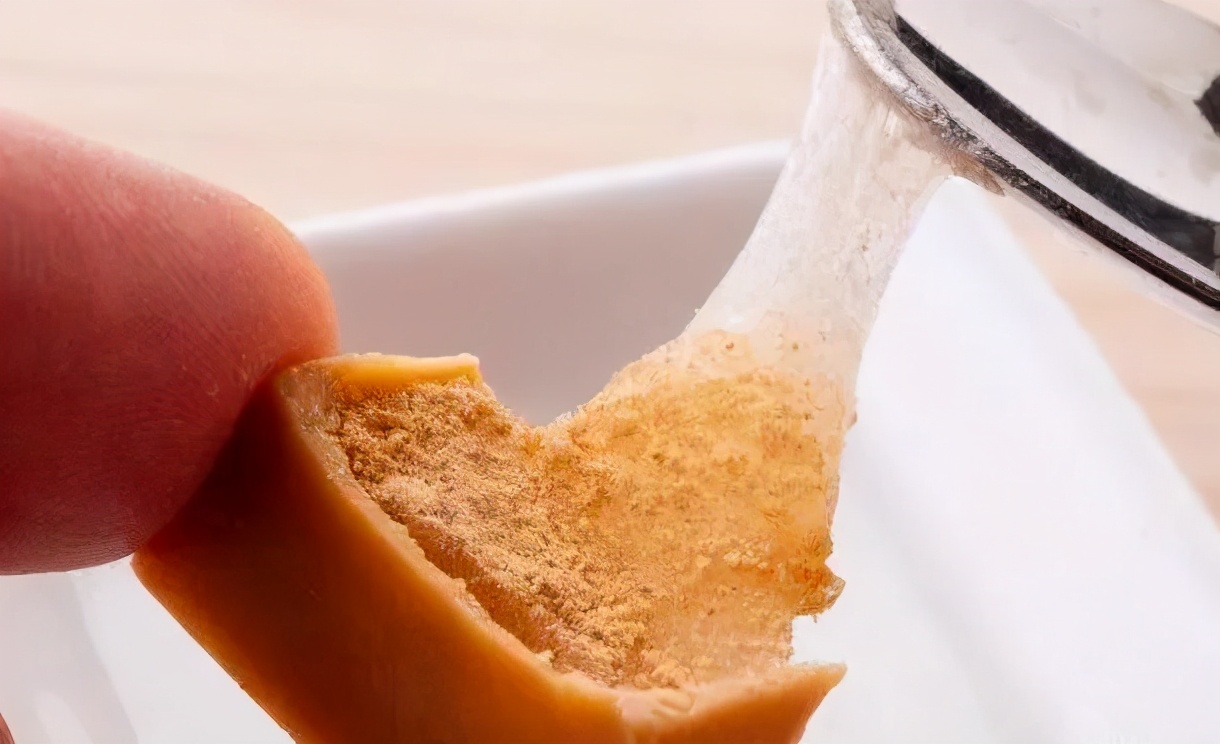 和麻将牌差不多的大小,但是吃起来却很惊喜,外层是浓郁的黄豆粉味巧克力,一咬开就能感受到里面软软糯糯的年糕夹心,QQ弹弹得很有嚼劲,满口都是香醇的黄豆粉气息。