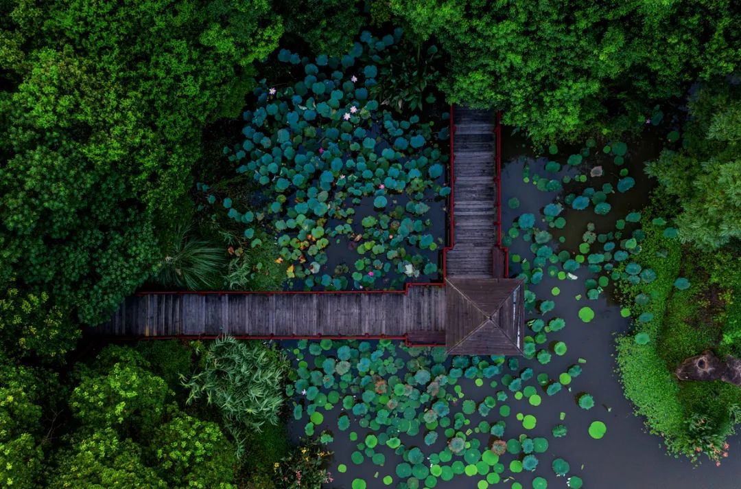 上海海湾国家森林公园位于奉贤区海湾镇内,公园内密布蜿蜒深邃的河道,还有水域面积达580亩的湖泊--百鸟湖,园内负氧离子含量平均2520个/cm³,是名副其实的天然大氧吧。