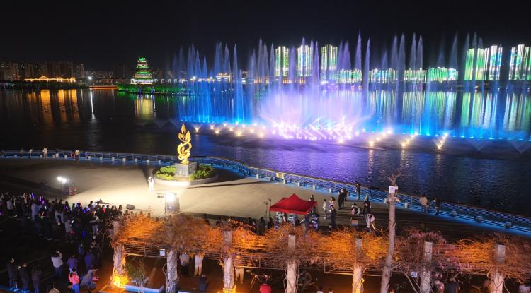成武县星空音乐会,每周六晚在文亭湖景区喷泉广场举办,歌手领唱经典曲目,千人大合唱,让市民参与沉浸式体验感受文亭湖夜韵之美。