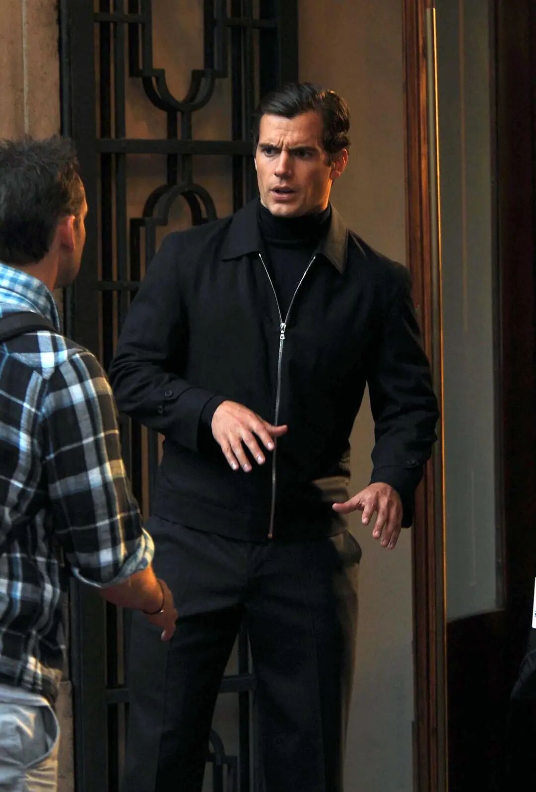 电影《秘密特工》里,亨利·卡维尔身着的正是这件Richards高领衫,完美复刻了60年代的潇洒利落。