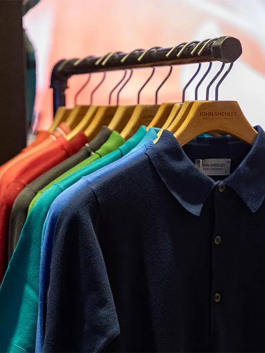 其次是根据喜好来选对颜色。John Smedley的品牌色库极为丰富,仅一款衣服就有多达20-30种颜色可选,同一色系下有数种深浅不一的色调。但主要以沉静、优雅的色调为主,明度变化十分细腻。