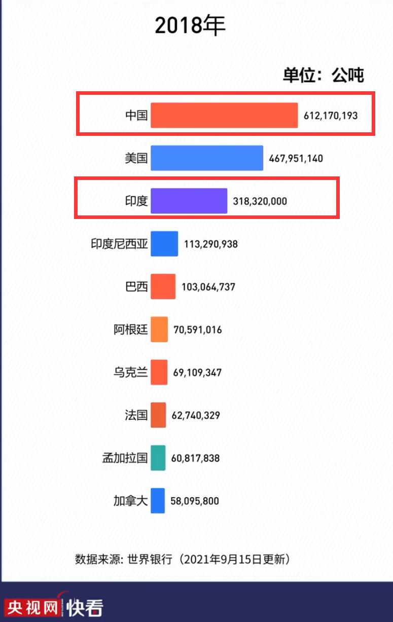 这些年,印度年粮食产量大约是6000亿斤左右(3亿吨),我国粮食自2015年起连续7年保持在13000亿斤以上,其中2021年达到了13657亿斤。