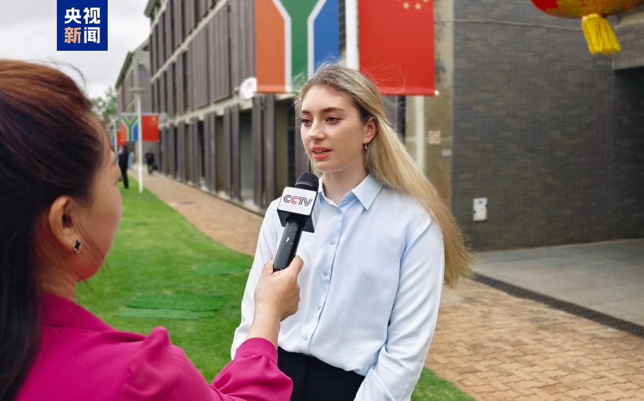 △南非青年代表马可欣在招待会上接受总台记者采访