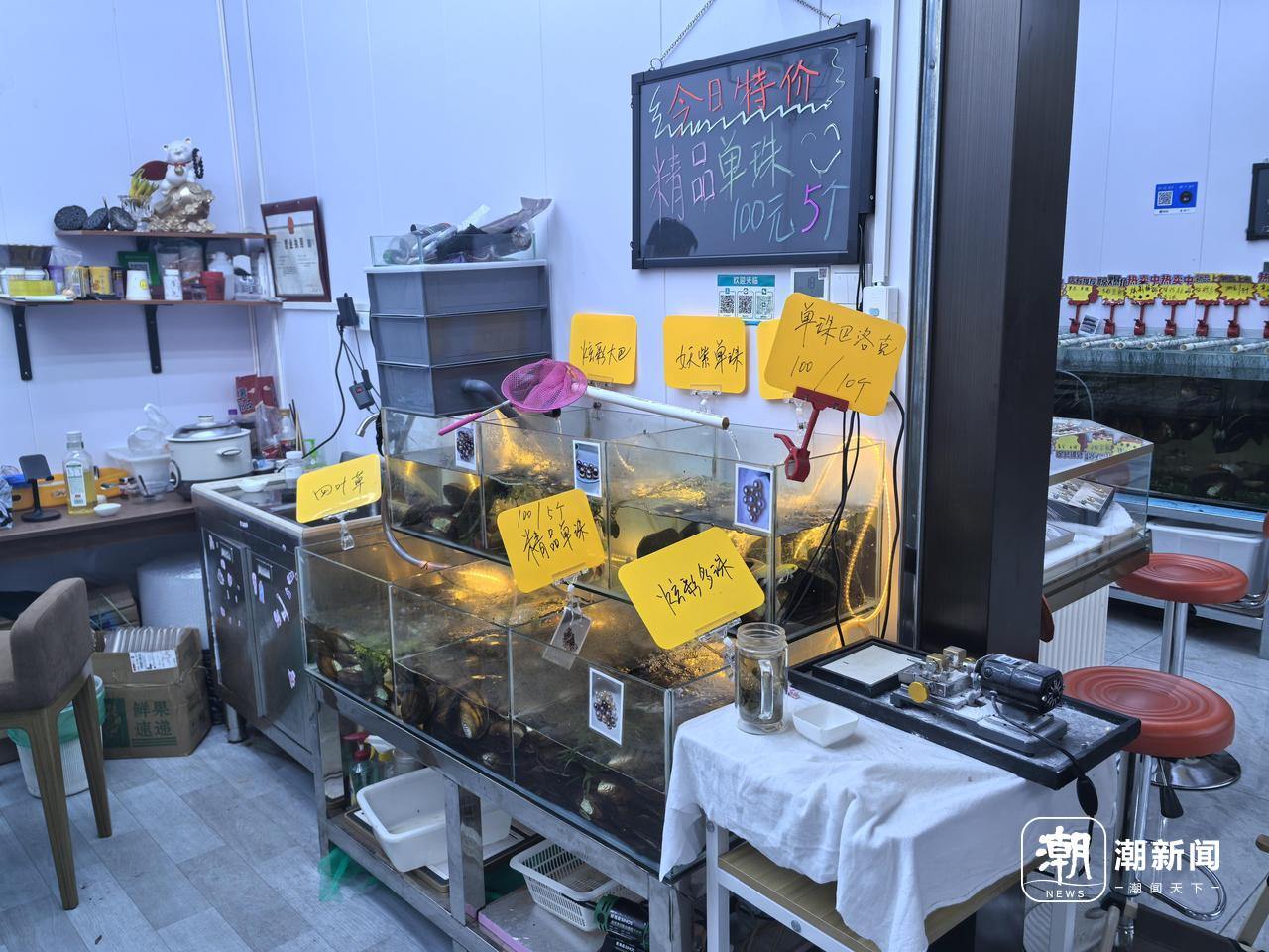 “开蚌体验,成为引流的一种手段,让消费者从单纯的‘买货’心态中脱离,转而享受购物过程中的乐趣与仪式感。”华东国际珠宝城相关负责人介绍。最近,在珠宝城内特地开辟了一块区域作为开蚌体验。20多个店铺增加了养蚌池,不同品种的珍珠蚌在清水里缓缓呼吸,价格明明白白写在旁边,等着游客来开启属于自己的惊喜。
