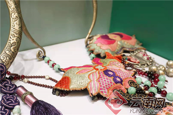 刺绣项链、流苏挂件、镂花披肩、鸡冠帽、小荷包……从头饰到配件再到鞋子,云南民族服饰色彩绚丽、款式多样、工艺精湛。或亮丽多彩,或厚实朴素,多以真丝、棉麻、白银、铜片、黄金、玉器、手工编织打造而成,上面绣有大量的花朵或民族图腾素材,反映了现实生活里的美好景象,到场中外媒体记者纷纷试戴,赞叹不已。