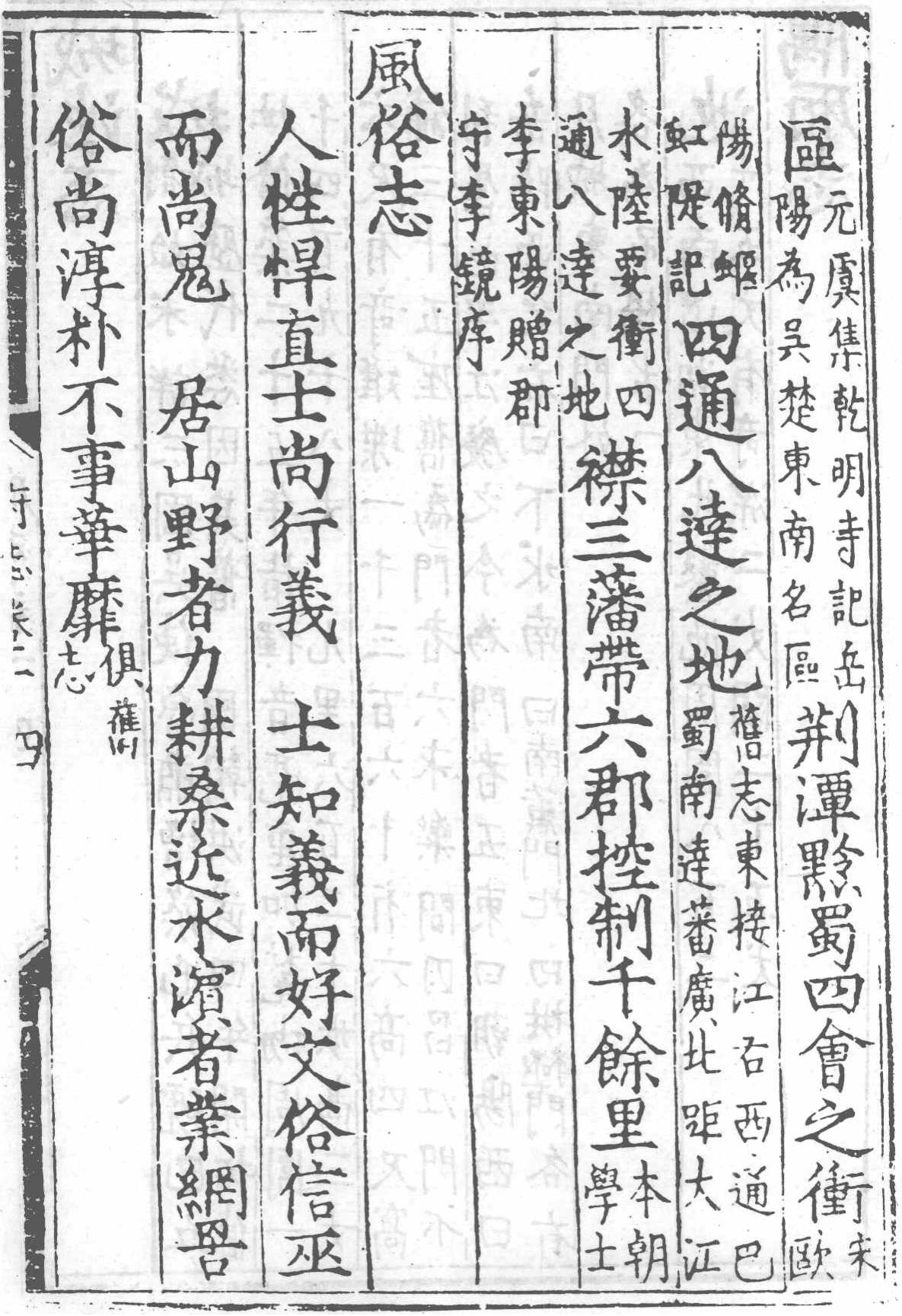 明弘治《岳州府志》“卷二·风俗志”载:人性悍直,士尚行义。士知义而好文,俗信巫而尚鬼。居山野者力耕桑,近水滨者业网罟。俗尚淳朴,不事华靡。