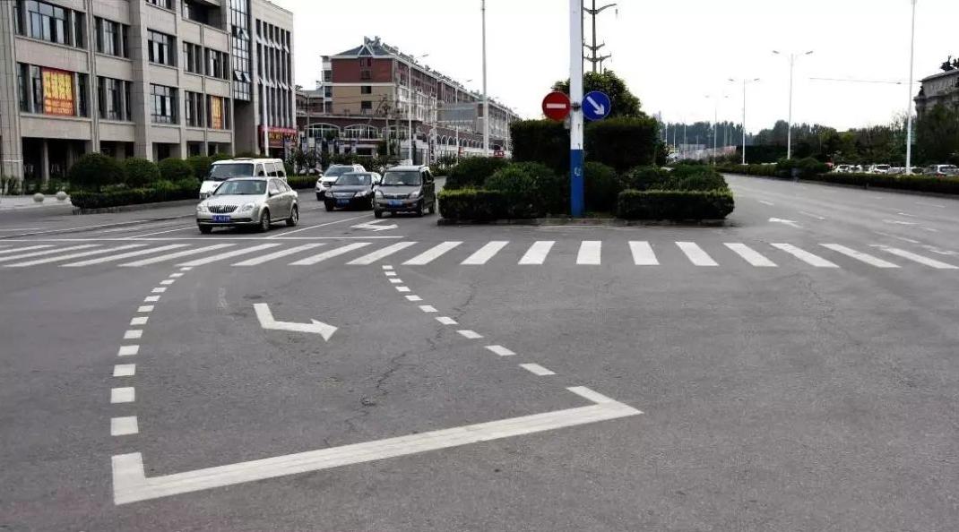 它连接同向车道分界线或机动车与非机动车分界线,一般出现在平面交叉口面积较大、形状不规则或交通组织复杂的路口。在有导向线的路口左转,需要在白色虚线左侧行驶。