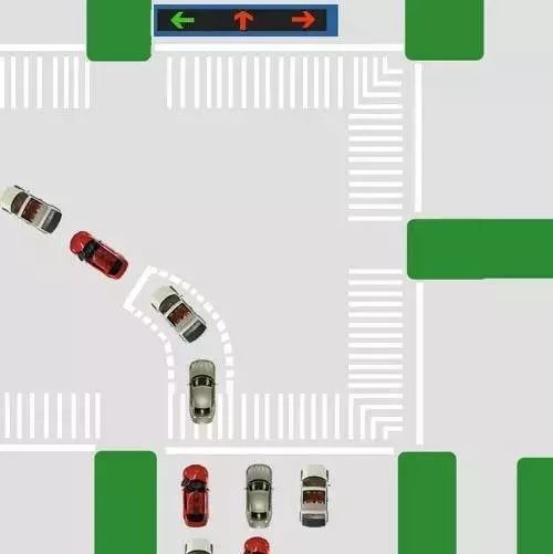 当同向直行绿灯亮时,即使左转灯显示的是红灯,左转弯的车辆也要进入左转待转区等候放行信号。