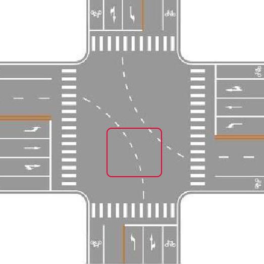 导向线是车辆寻找出口车道困难或交通流交织严重时,来辅助车辆行驶和转向的。