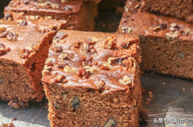 鸡蛋打发到发白,加红糖牛奶糊、面粉泡打粉,再拌一勺蜂蜜一勺油,最后撒果仁进烤箱,165度烤40分钟,满屋飘香。