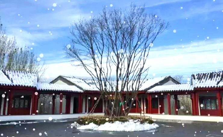是大厂书画院里银装素裹的亭台