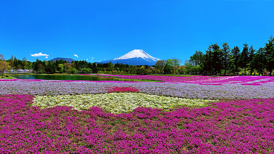 实际上,除了樱花之外,每年4-5月,富士山下芝樱宛如花的地毯般盛开的景色也吸引着大量游客前往。值得注意的是,很多人误以为芝樱也是樱花的一种,其实不然,芝樱又名天蓝绣球,属多年生矮小草本。
