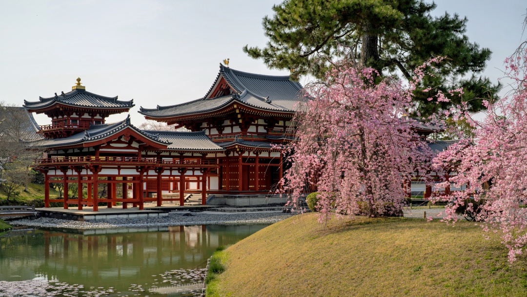 在日本,樱花种植之处,以寺院、园林等日式建筑居多。樱花的背景经常是覆以黑漆的木构建筑、青黑色的石砌围墙和河堤。暗色的背景让樱花更加烂漫夺目。