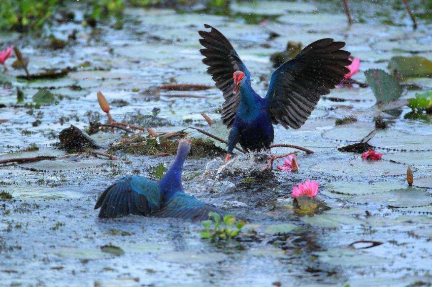 比较令人担心的是,这里的生存条件不是很好,到处充满了毒物和猎食者。并且还有许多体型庞大的鸟类,鸸鹋、鹤鸵等大体型鸟类抢占了巨水鸡的资源。因此,巨水鸡在澳洲的生活不是很好,实力不强、还不会飞,抢食物的能力不行,看着有点可怜。