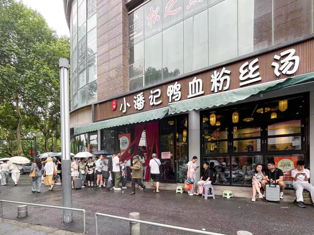 论排队,南京大概没有哪家鸭血粉丝能赢得了小潘记。店处热闹的位置,小潘记只要开门,总是门庭若市。