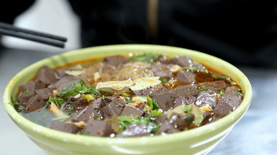 顺滑的鸭血、紧实的鸭肫、脆韧的鸭肠、鲜美的鸭肝、爽口的粉丝、浓郁的豆果、本地辣油,还有翻着花儿的香葱……一碗鸭血粉丝汤,好吃上头。