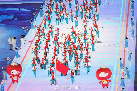 为什么是紫色的?象征包容性的紫色是国际残疾人奥林匹克委员会去年新发布的标识颜色,代表占全球人口15%的残疾群体不再被边缘化。仪式开始前,鸟巢布满紫色灯光,就连发给观众的物资包,也是紫色的。(中青报·中青网记者 杨杰 沈杰群)