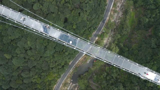 这一座高空玻璃天桥,可以说是潘家小镇的一大特色景观,自今年6月份正式开放体验以来,吸引了无数的游客,除此之外,走完天桥,还有惊喜在等待着我们:高空滑轨,这是体验完高空玻璃天桥后最快速的下山方式。