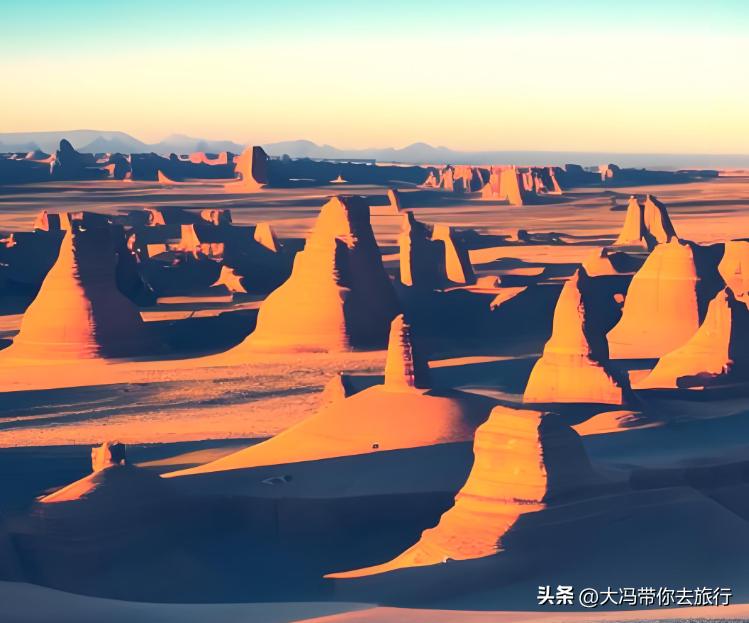 去魔鬼城游玩,最好选择清晨或傍晚。清晨时分,阳光柔和,土丘在晨光中投射出长长的影子,明暗交错间更显神秘;傍晚时,夕阳将土丘染成浓郁的橙黄色,远处的戈壁与天空连成一片,仿佛穿越到火星表面。