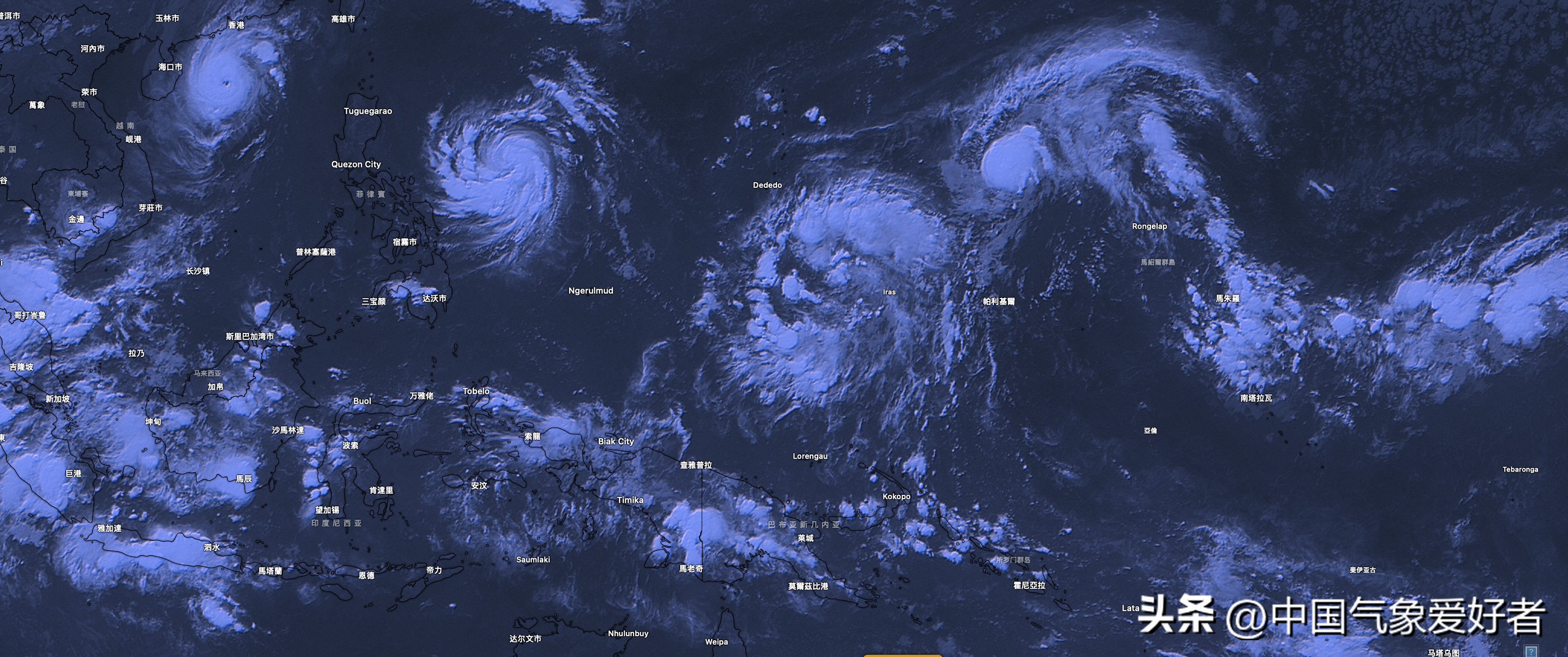 我们把视野放大,会发现西北太平洋上空仍然热闹的很,而且更加变本加厉。今天下午,深秋11月竟然接连生成了今年第23号台风桃芝和24号台风万宜,形成罕见的“三台共舞”现象。要知道,在人类有卫星监测天气以来,只有1994年11月发生过这种情况。这说明副热带高压真的非常偏强和偏北。正因此,在副高引导下,23号台风桃芝将追随22号台风银杏的路径进入南海,并于11月14日至15日逼近广东和海南沿海。虽然11月的季节性因素使得台风登陆难度较大,比如海温比较低了,东北季风也下来了,导致台风不太容易逼近,但桃芝的外围雨带仍将对华南地区产生影响,可能为珠江口地区带来风雨天气。