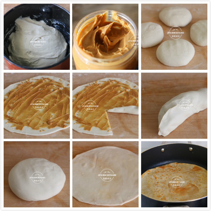 【食材】:普通面粉500克、清水350克、花生酱8汤匙、盐4克、油适量。
