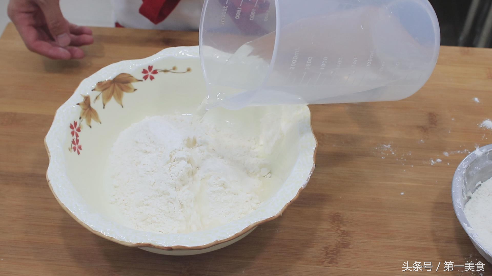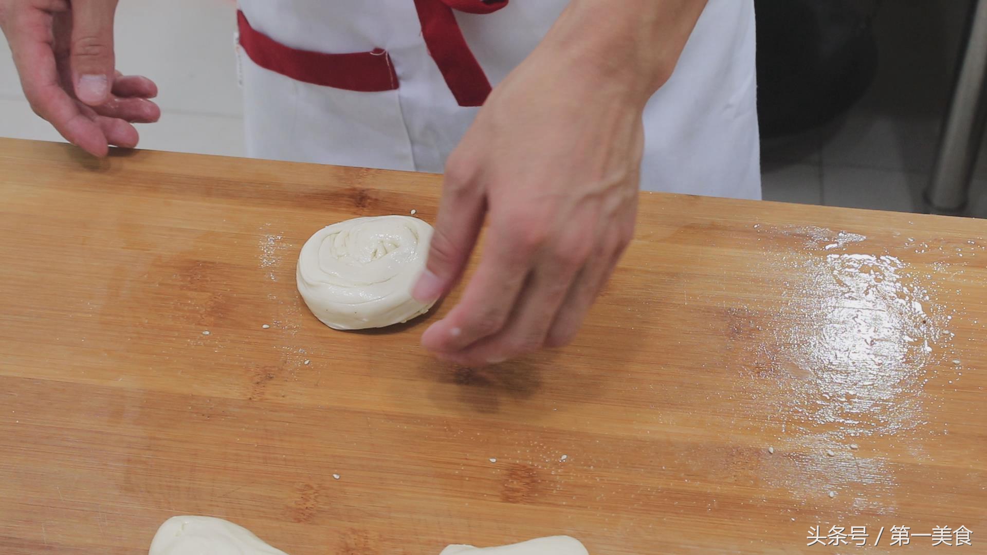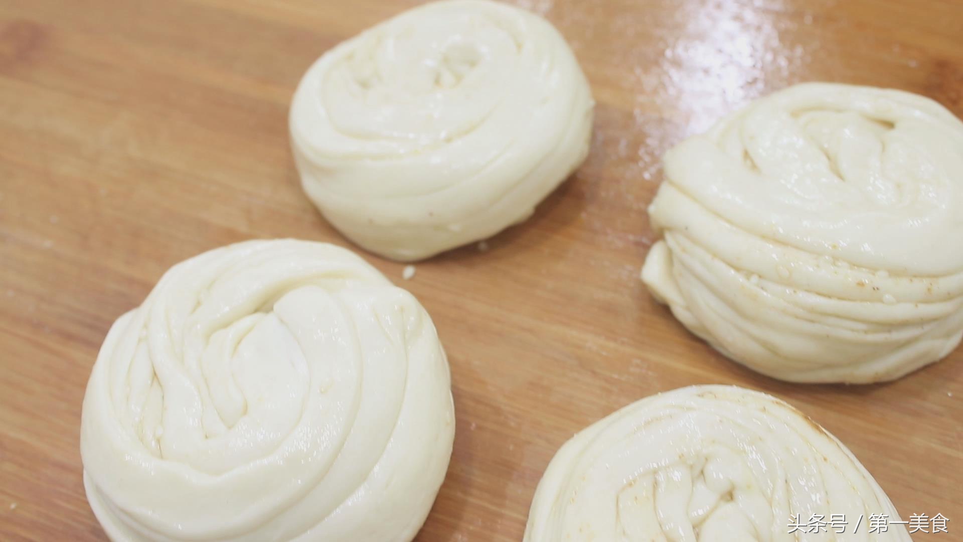 先搅成面絮,再揉成面团,盘丝饼用的不是发面,不用等待发酵。
