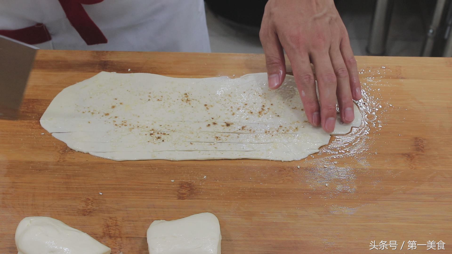 用刀把面皮划破,划成细条状,这个条划的越细盘丝饼出来的丝就会越丝。