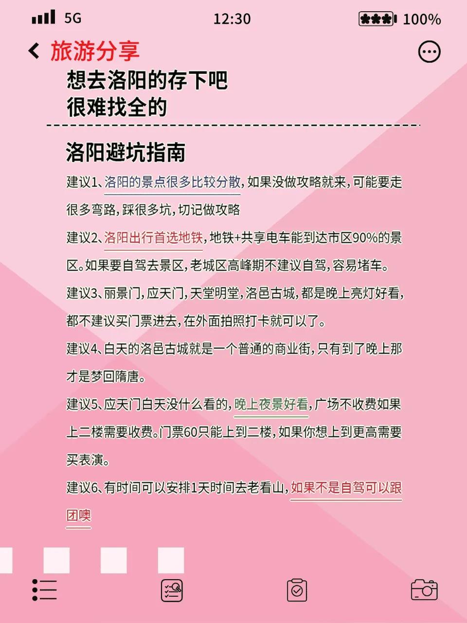 洛阳景点比较分散,没做攻略可能要走很多弯路,切记做攻略