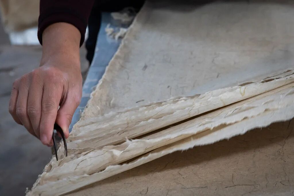 夹江的佛缘,并不只停留在石壁之间。另一种被江水滋养的手艺——竹纸,也与佛教紧密相连。