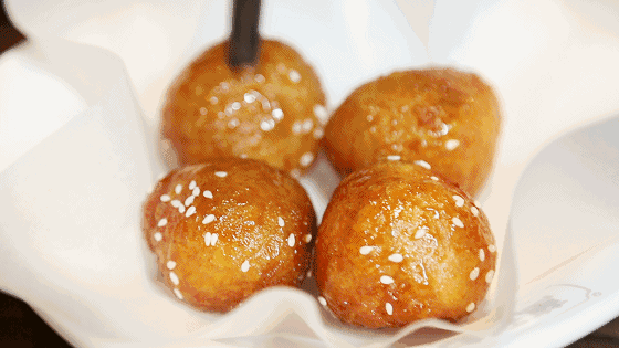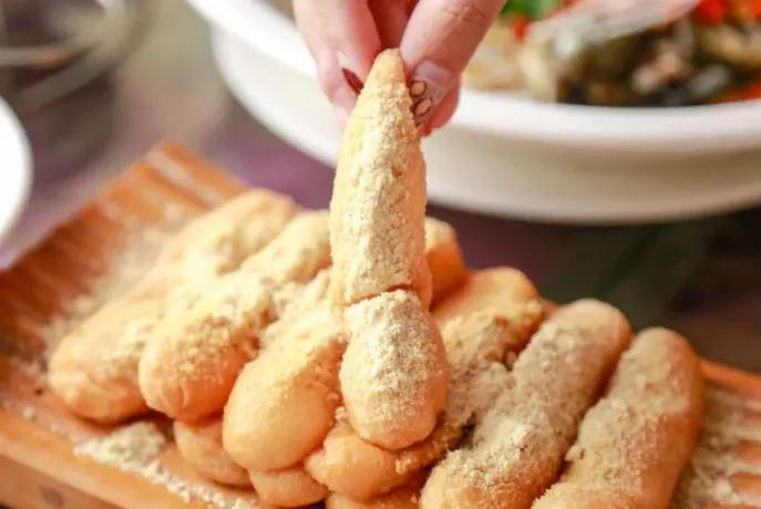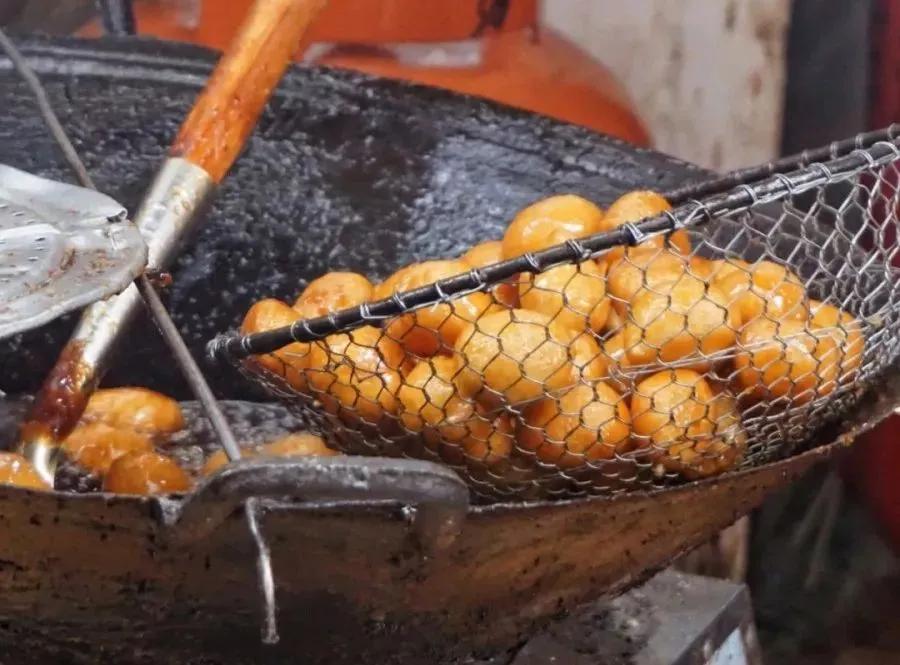 长沙的糖饺子,本体其实是糯米团,油里炸成金黄了放到白糖和黄豆粉中滚一滚,蘸满糖粒子,这就是喜爱甜味的长沙人的早餐首选!