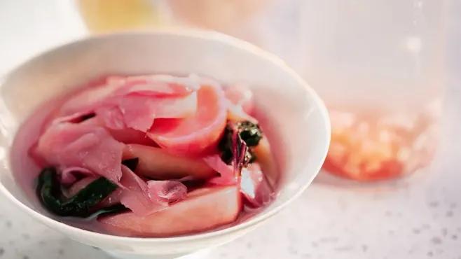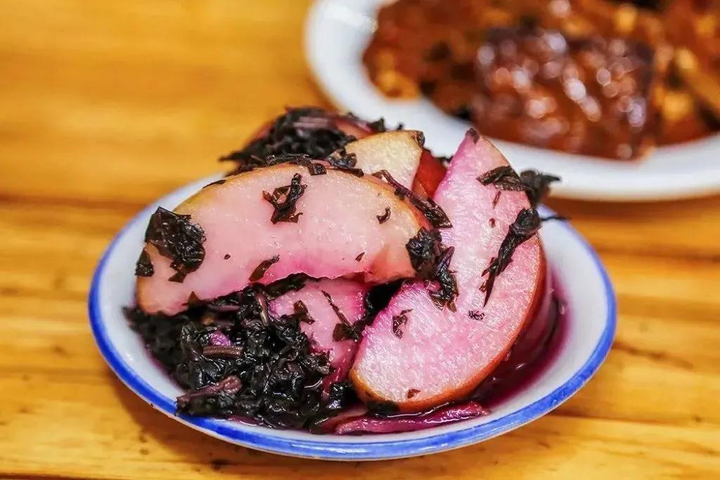 紫苏桃子姜是用桃子、紫苏叶、仔姜、话梅等腌制而成。按比例腌制,没有其他乱七八糟的添加,紫苏桃子姜的纯天然爽脆口感,一口下去让人胃口大开。