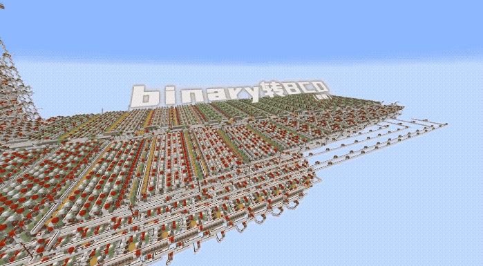 一步一个脚印,每突破一个困难就会记录下来。例如把二进制转为BCD码的模块就得搭700米长的方块,甚至超过了游戏的默认显示范围。BCD码是用4位二进制表示十进制中的0-9,相当于不把123当成“一百二十三”,而是当成“一二三”再分别用二进制表示。而后更是像在给粉丝们做