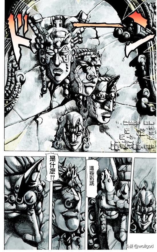 但是“桑坦那”绝不是唯一的一具“柱之男”。根据壁画所示,还存在着其他三个同类。每个“柱之男”头上都长有代表身份象征的角。