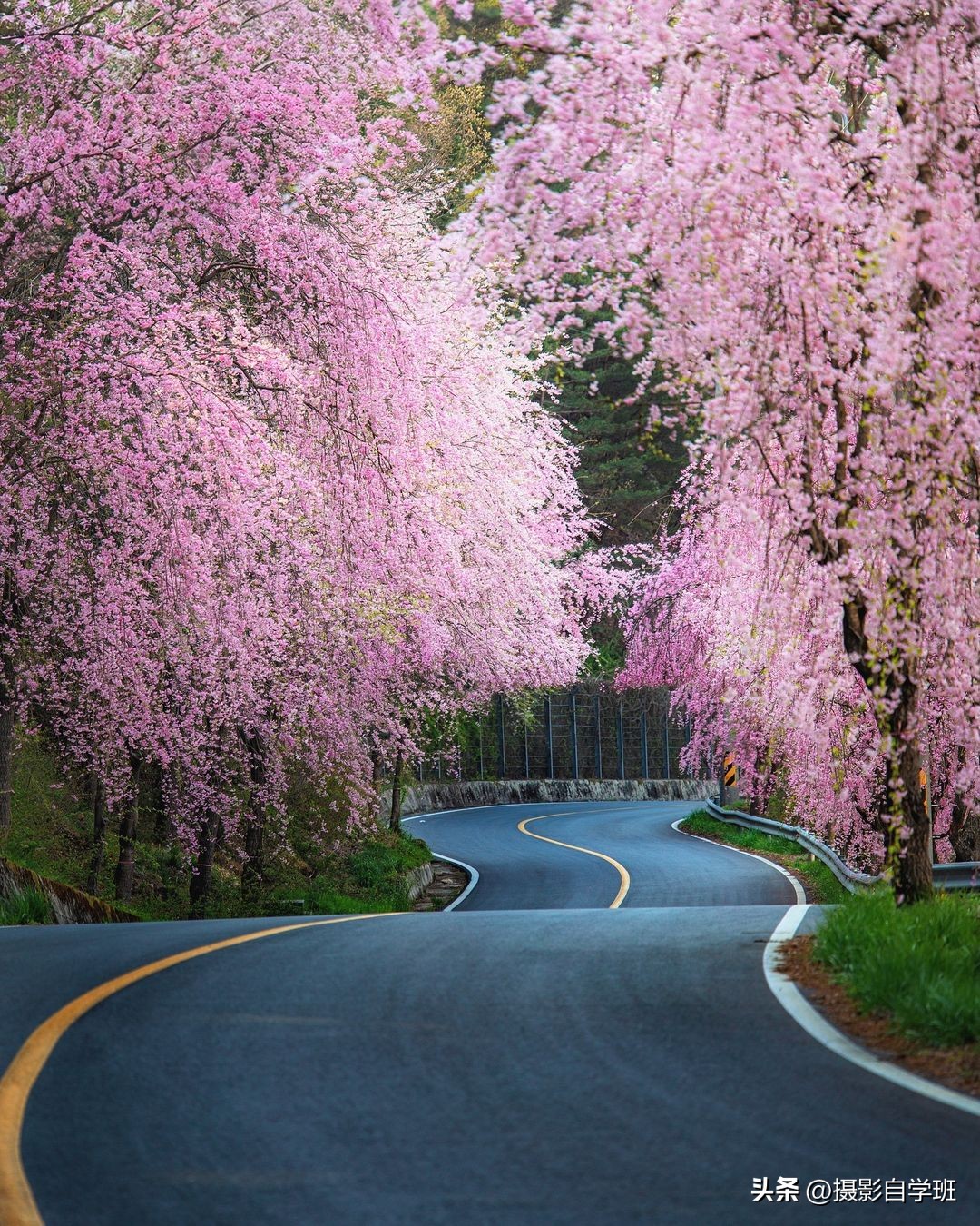 遇到路的时候,我们要顺着路延伸的方向,向前拍摄,这样画面更有纵深感、立体感,不要只截取一小段,如果有人拍照的话,可以让人站在路边,同样还是顺着路延伸的方向,向前拍。