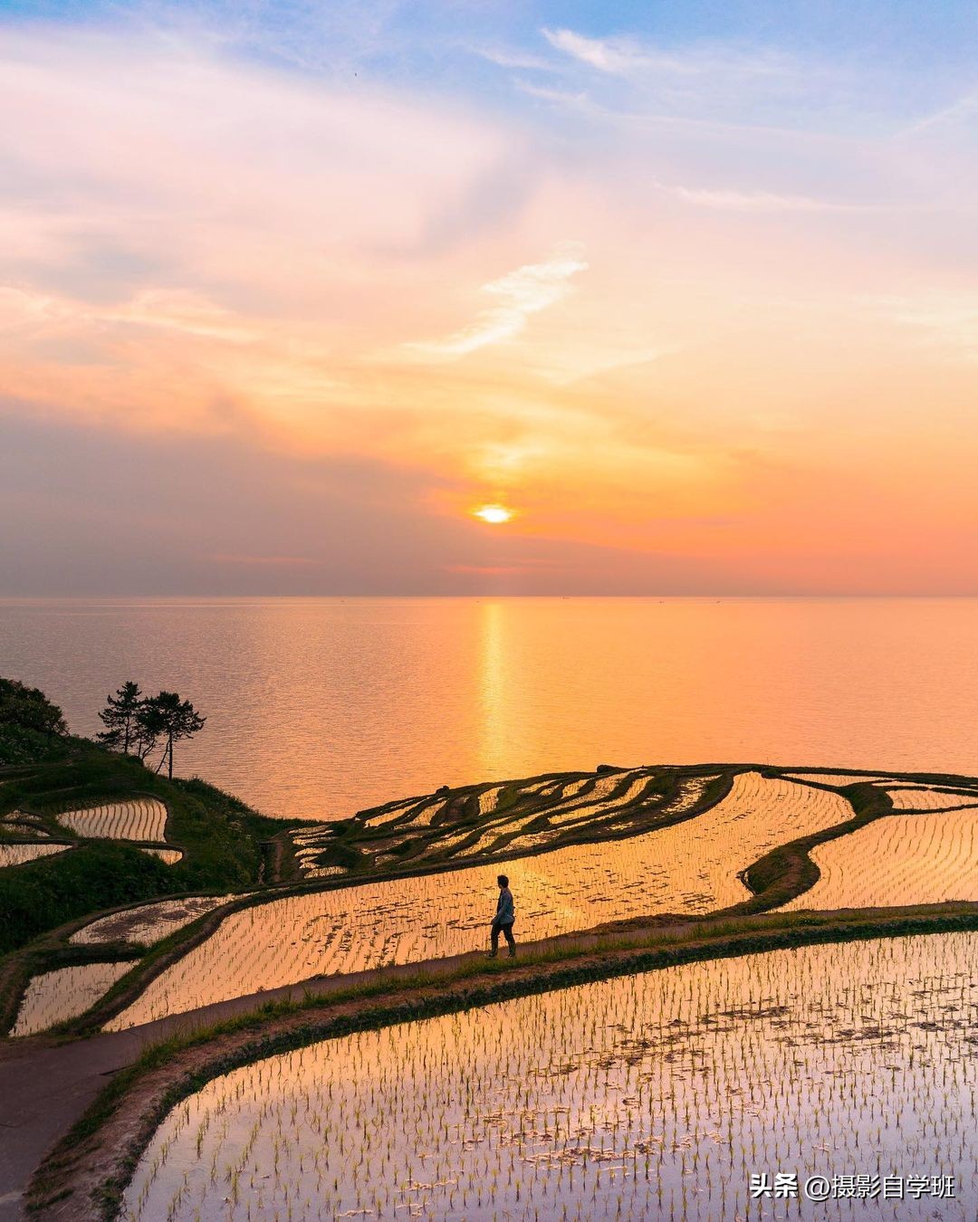 图9这张照片,水面和天空是“面”的形态,人是点的形态,稻田的堤坝是线条的形态,画面当中点、线、面对比,远处的光和剪影的人形成明暗对比,也是大小对比结合上明暗对比,多个对比结合在一起,会让画面张力更加饱满,另外拍摄剪影的时候,要让被拍摄者的肢体打开,比如这个人走动的时候,再按下快门,两条腿分开有缝隙,不要等他站在那里,像一棵树一样,没有缝隙不透光,全都是影子,再拍摄成剪影就不好看了。#冬日生活打卡季#