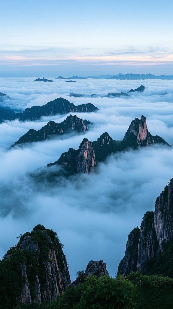 "总结来说,“云海”描绘的是一种宏大、壮丽、充满想象空间的自然景象,常常带有一种超凡脱俗的美感和意境。"
