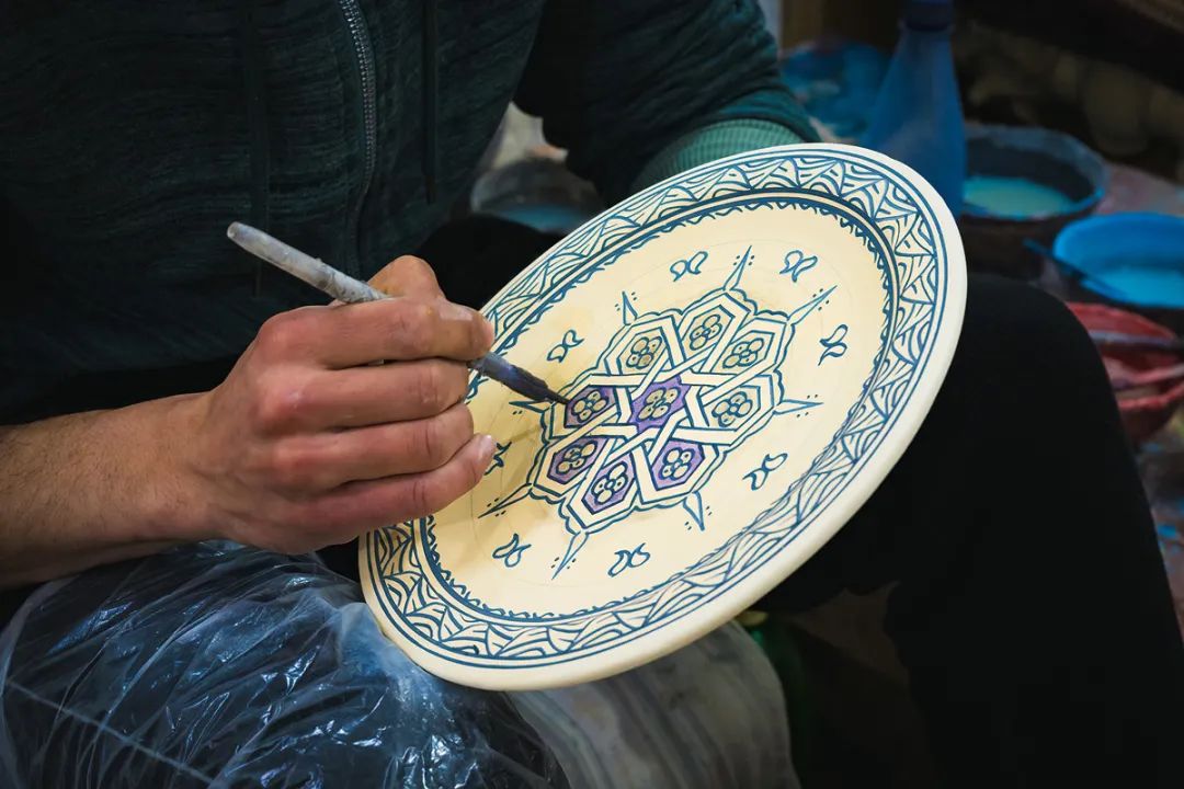 陶瓷的手工制作是一个复杂而细致的过程,除耐心与经验外,每一步都需要倾注大量心血。工匠们精心挑选黏土,用陶轮塑形或手工压模,干燥后涂上白色泥浆,再用天然染料精心绘制,最后放入窑中烧制,将鲜艳的釉色和精美的纹样凝固其上。不同地区的陶瓷制作各具特色:里什坦被誉为乌兹别克斯坦的陶瓷之都,当地独特的釉料“Ishkor”赋予瓷器美丽柔和的绿松石色泽;吉日杜万小镇的陶器以绿褐色调和几何图案装饰著称,以无尽结形式呈现的“Girih”几何线条图样独具特色;撒马尔罕和布哈拉的铅釉使瓷器呈现出温暖而深邃的棕红色调,精致繁复的图样设计延续城市深厚的文化气质。首都塔什干的市场和画廊是乌兹别克斯坦各地陶瓷的汇聚地,是游客参观和选购纪念品的理想之所。