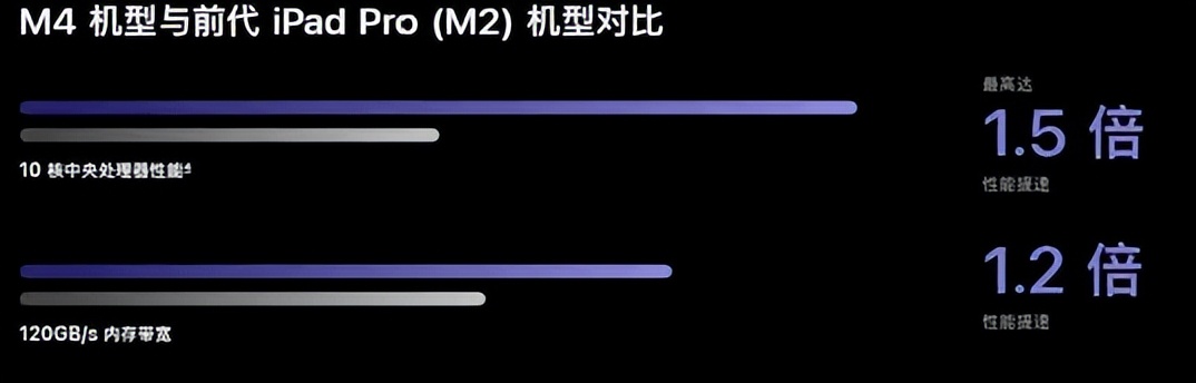 iPad Pro 2024搭载全新M4芯片,比上一代M3多了两个核心,单核性能提升5%-10%,多核性能最高提升25%,让日常使用和专业软件都更加顺畅。不过不同容量略有差别:256GB和512GB是9核+8GB内存,1TB和2TB才是完整10核+16GB内存。