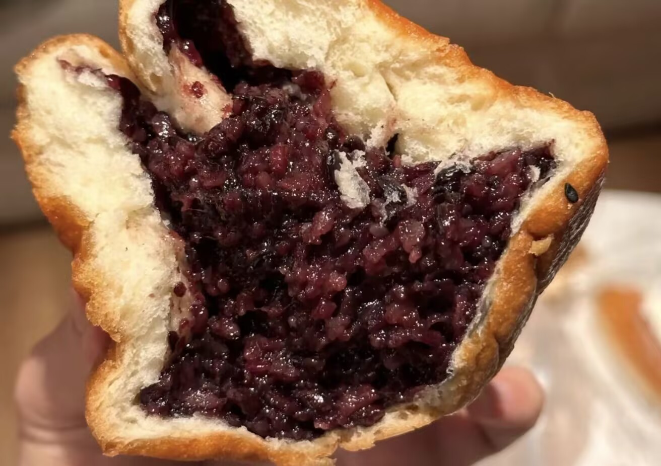 炸面包论斤卖,十五元一斤,有紫米、 糯米、红豆、黄米四种口味。