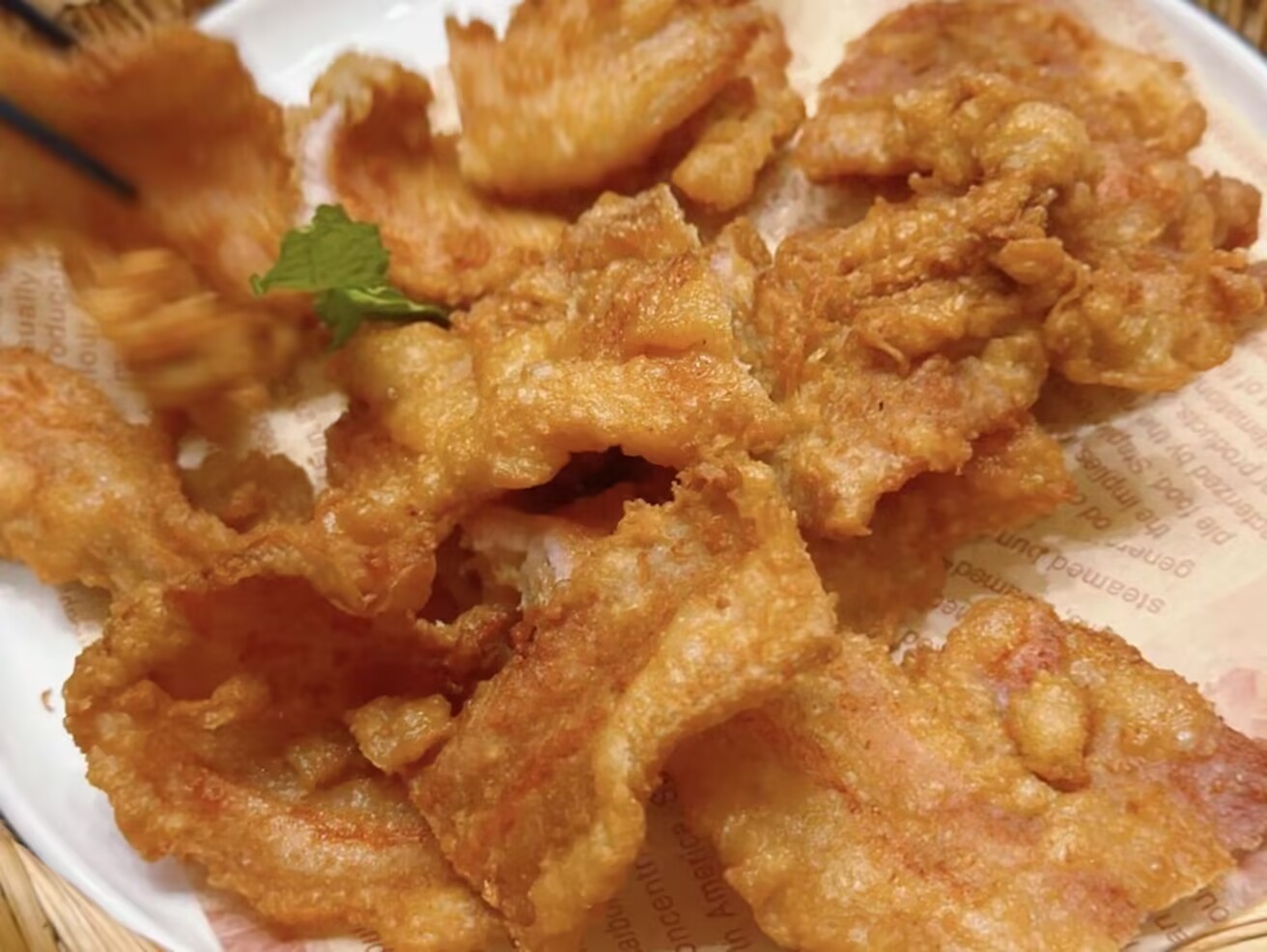 炸鱿鱼条,外头裹的壳酥软,淋的蒜蓉甜辣酱汁,吃着清口不腻,整体吃下来没啥踩雷的,除了环境服务一般,饭点要排队之外,没啥毛病。