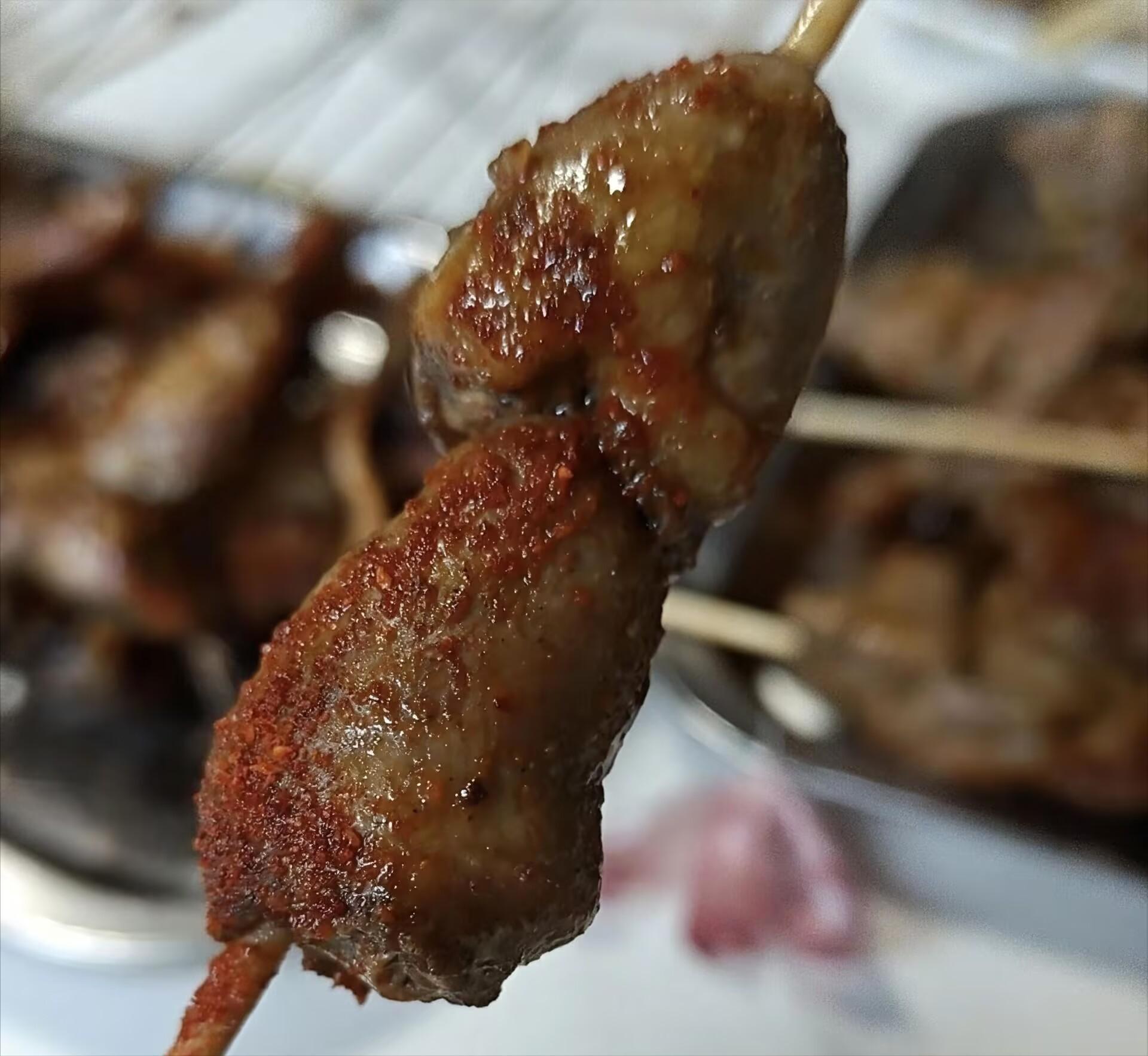 除了馄饨,他家还卖烧烤,烧烤是碳烤的,肉料腌的都不重,求的都是本味。
