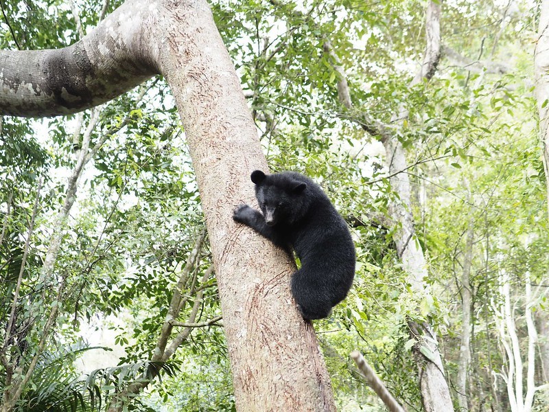 不过,在灵活度上,二者不相上下。经常打着打着黑熊就蹿上了树,然后老虎在树下无能狂怒。当然,如果黑熊不幸选中了一颗弱小的树攀登,老虎往往会直接撕了这棵树,让黑熊直接落下来。